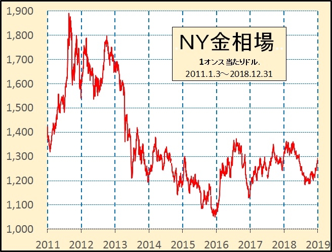 2011年から2018年までのNY金相場の動向(2019/03/03)