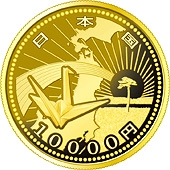写真左は金貨表面で、金貨・銀貨ともこのシリーズの共通デザイン。中央は1次貨の金貨、右は1次貨の銀貨デザイン。金貨は直径26ミリ、重量は15.6グラム(1/2オンス)、銀貨は直径40ミリ、31.1グラム(1オンス)。1次貨の発行枚数は、金貨が14,000枚、銀貨が60,000枚。2次~4次貨は27年度中に順次発行されます。
