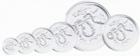 銀貨の種類は、写真左から1/2オンス、1オンス、2オンス、5オンス、1キロ、10オンスの6種類に、10キロ銀貨を加えた7種類。